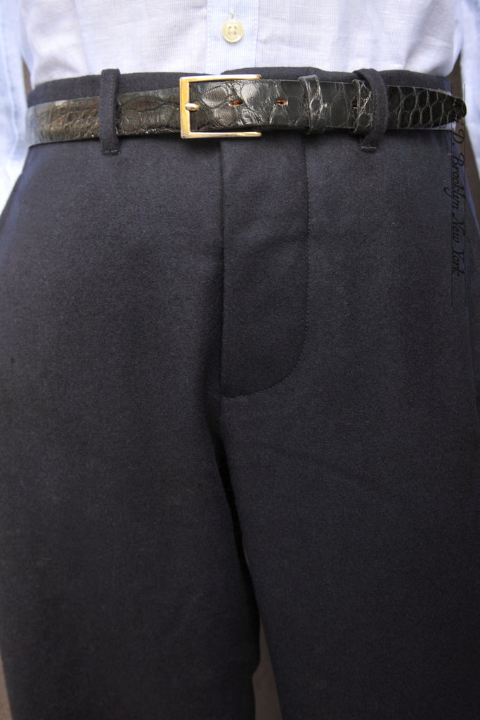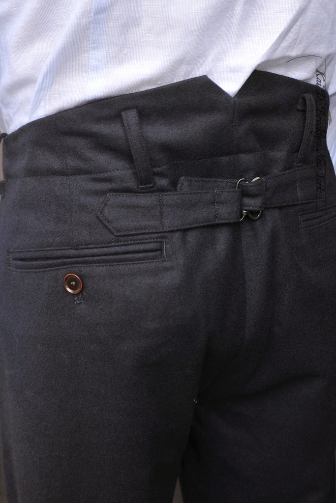 Made from the most luxurious and high quality Italian virgin wool flannel. The fabric has a good weight and not too shiny but has a dressy appearance.