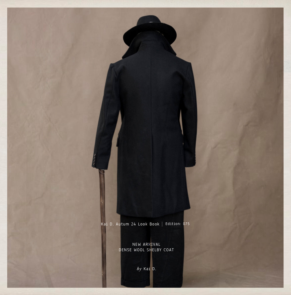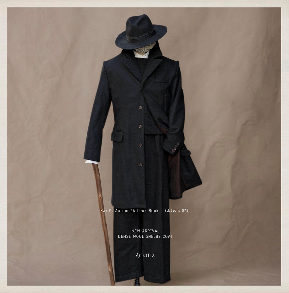 Made in heavy wool. fully lined with soft wool. Based on 1920s top coat. The fit is slightly bigger to allow for layering over a suit jacket. If you want a slim fit without layer, you may order one size down.