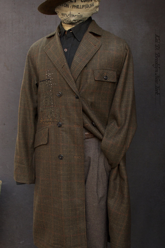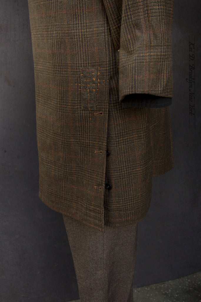 Made from a light Scottish wool with tonal plaid. Very attractive coloration. Hand patched stitch detail.