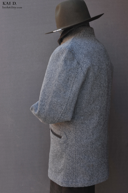 Made in a soft wool with a unique 'broken herringbone' retro weave. The fabric is soft but warm with a retro look to it. The lining in a light weight Japanese wool.