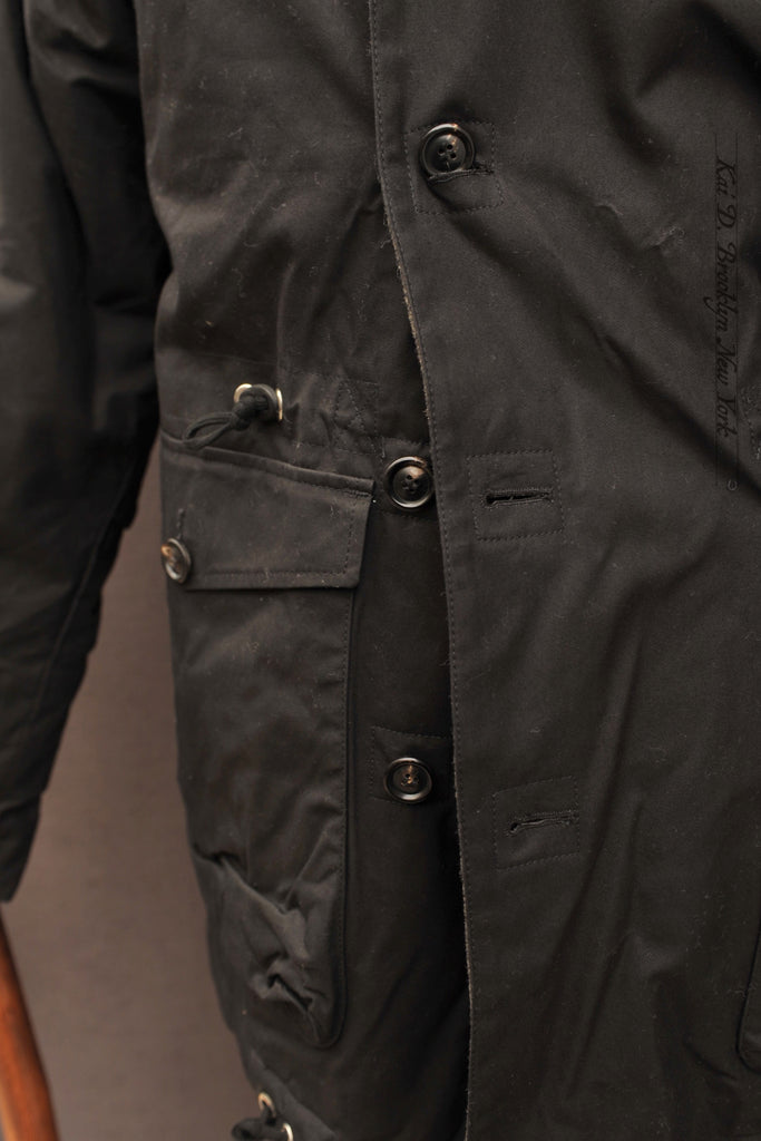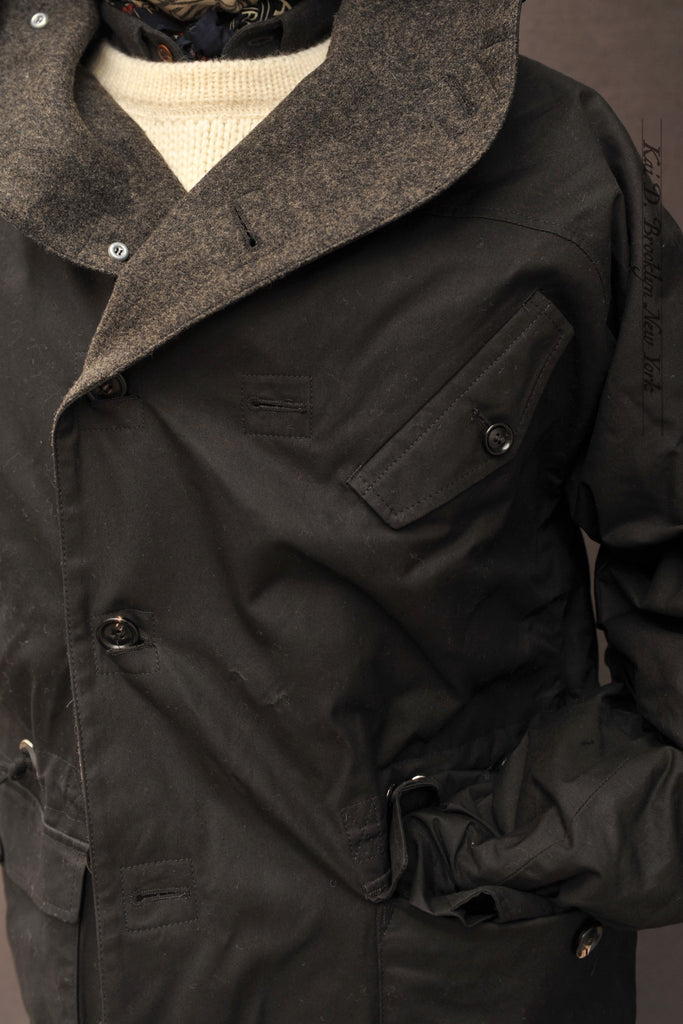 Made in heavy weight dense wool twil. Based on 1950s motorcycle trench. Fully lined. **...