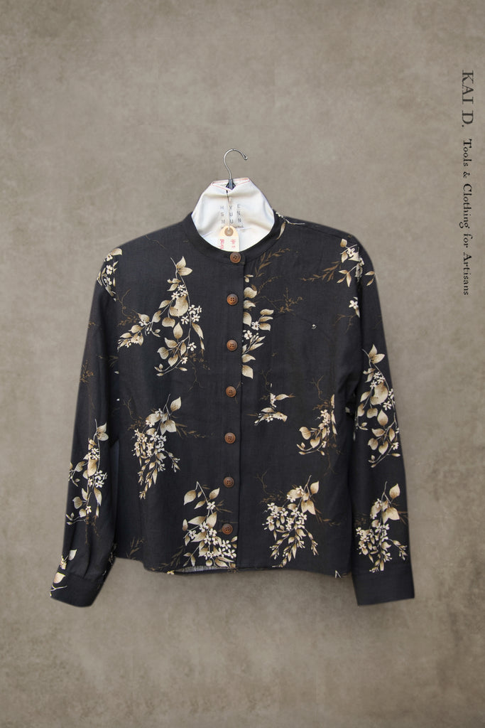 Made in floral printed heavy linen. Tailored in Japanese linen with a dry, textured hand and natural drape. Designed with a relaxed sleeve and an adjustable self belt for subtle shape or ease.