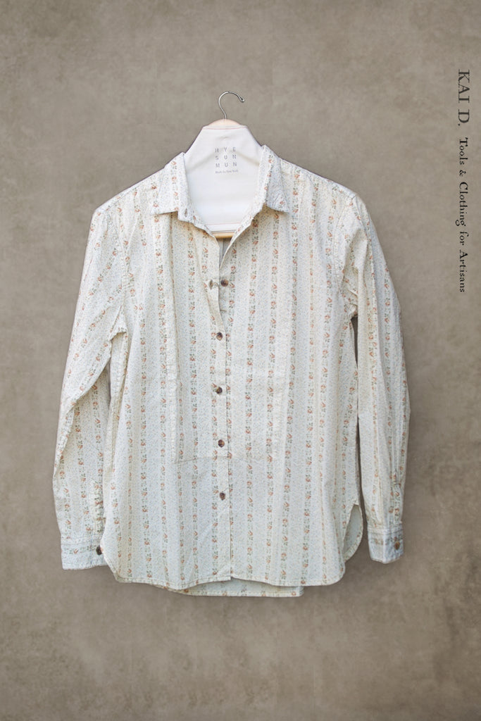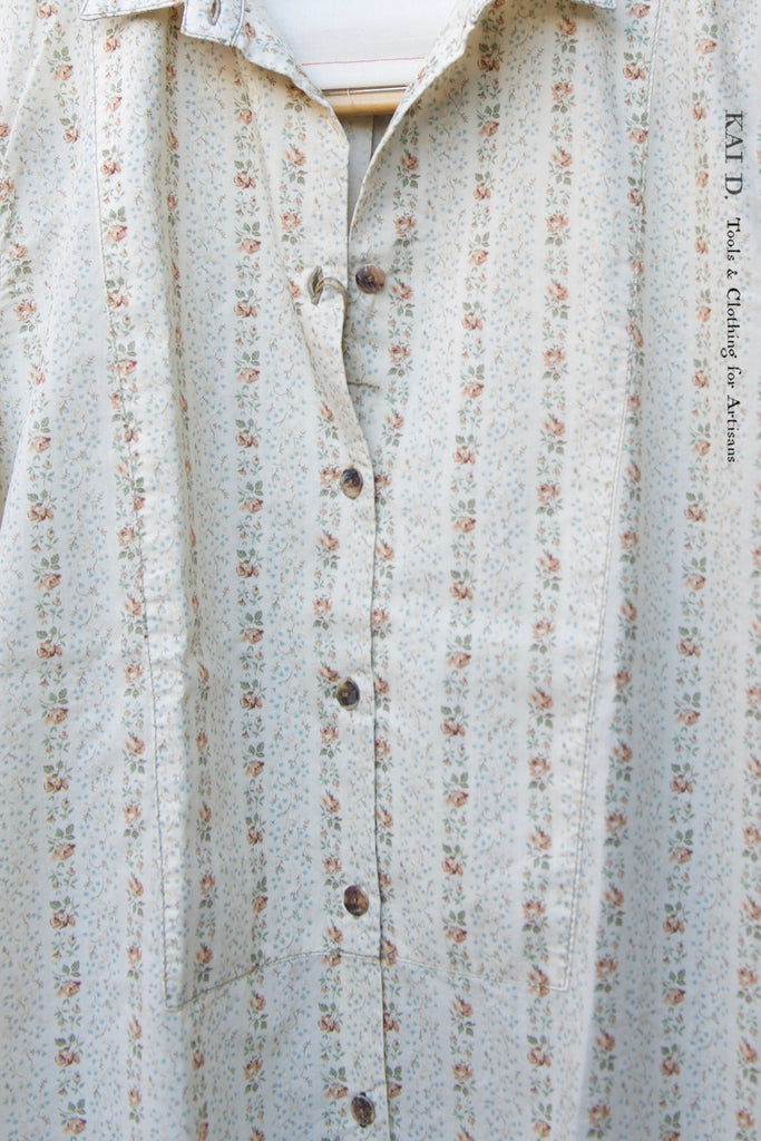 Made in English liberty print floral cotton. Bib front detail. Relaxed cut.