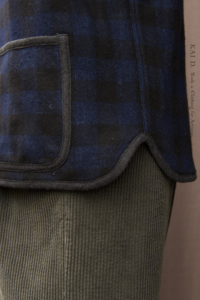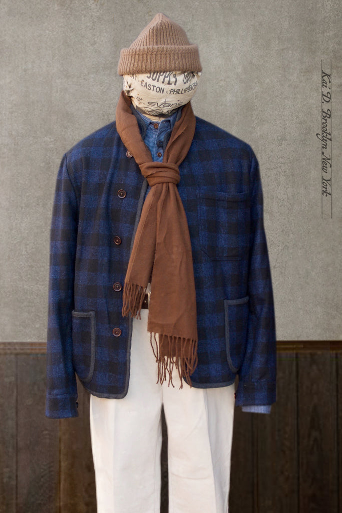 Made in Italian wool cashmere tonal buffalo plaid. The fabric is very very soft and luxurious. Binding in British wool. Inside body in charcoal soft wool and inside sleeves in super 120s virgin wool. All the textiles used are very luxurious.