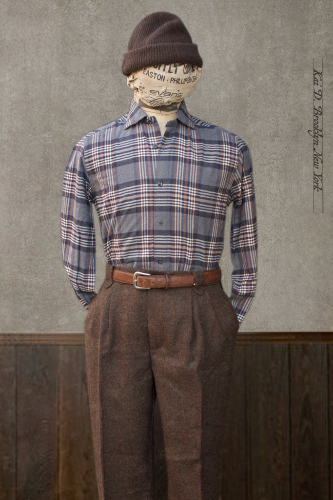 Made in Italian cotton plaid. The combination of a grey heather ground with tones of browns make this...