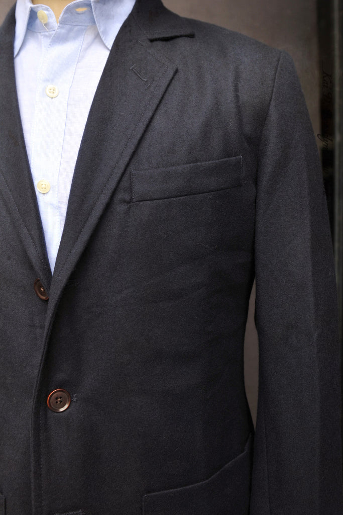 An unlined soft unconstructed blazer that is inspired by the turn of century sack suit but updated with a modern silhouette. Inside sleeve lined.