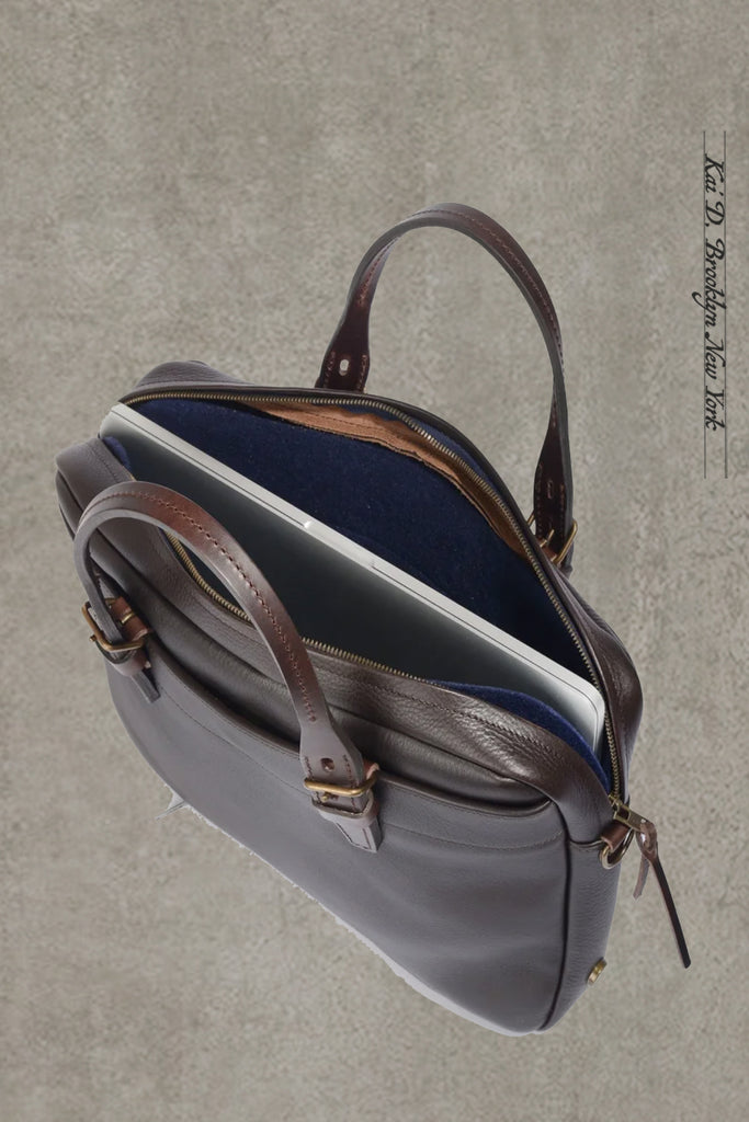 The new Folder bag, made from vegetable tanned leather, can be carried in the hand or over the shoulder. It is a very practical business bag with clever features that make travelling easier: a built-in sleeve for a 13-inch laptop, an inside zippered pocket and two outside pockets. It comes with a removable leather strap which has a comfortable leather shoulder pad lined with natural felt.