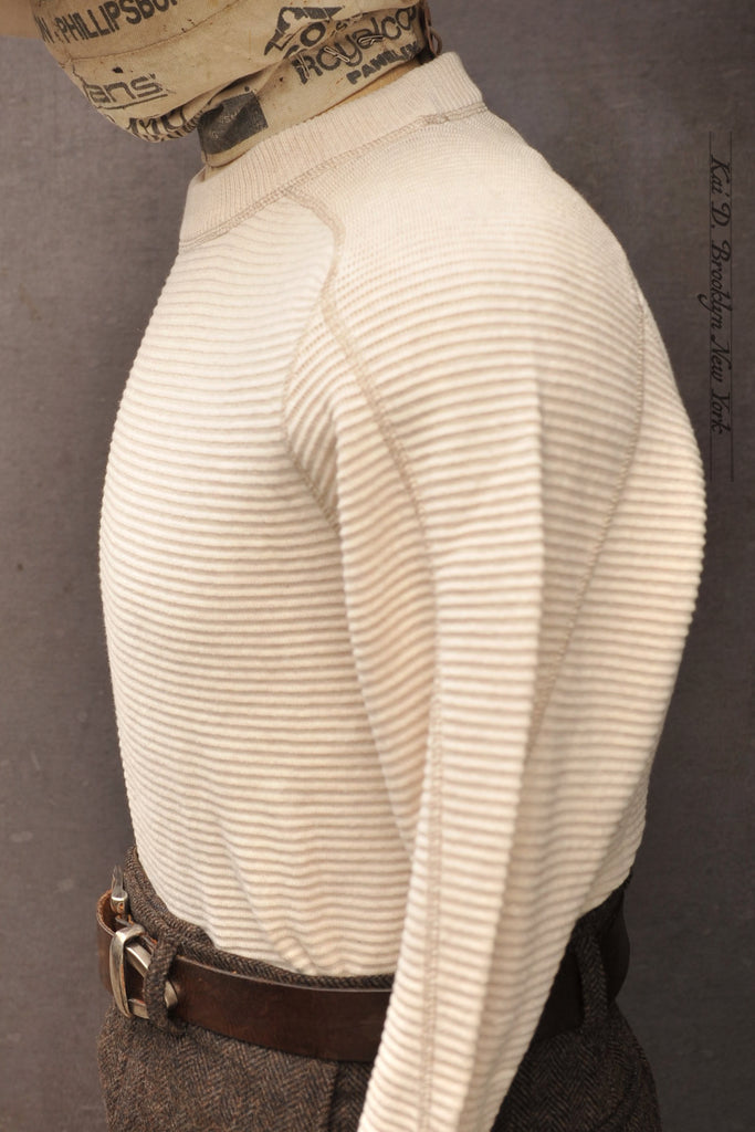 Made in 100% thermal cotton with horizontal ribbing texture. The fabric is light weight and comfortable. Good for layering