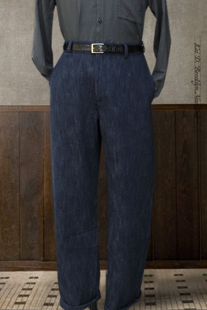 Made in handspun herringbone cotton. Fabric is thick but soft. Size 2 (size 31): waist...