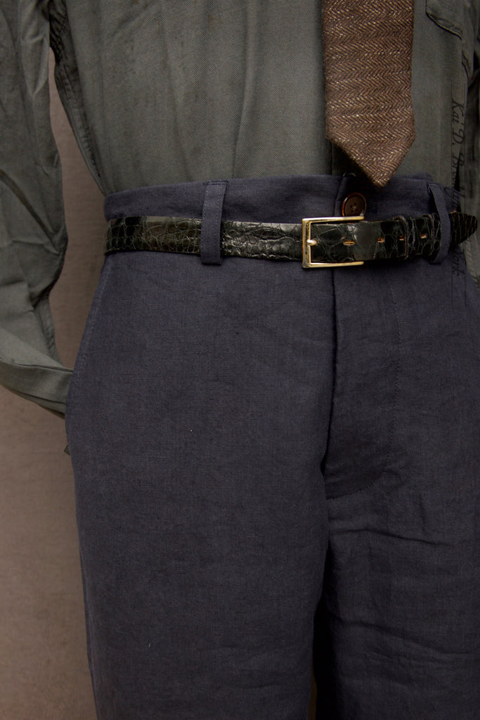 Made from heavy weight stone washed Belgian linen.  Matching 'Shoemaker Jacket' available for a suit.