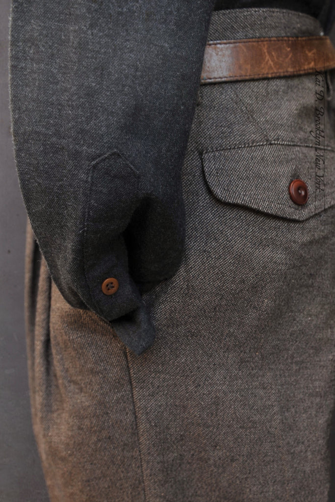 Made in handspun herringbone cotton. Fabric is thick but soft. Size 2 (size 31): waist...