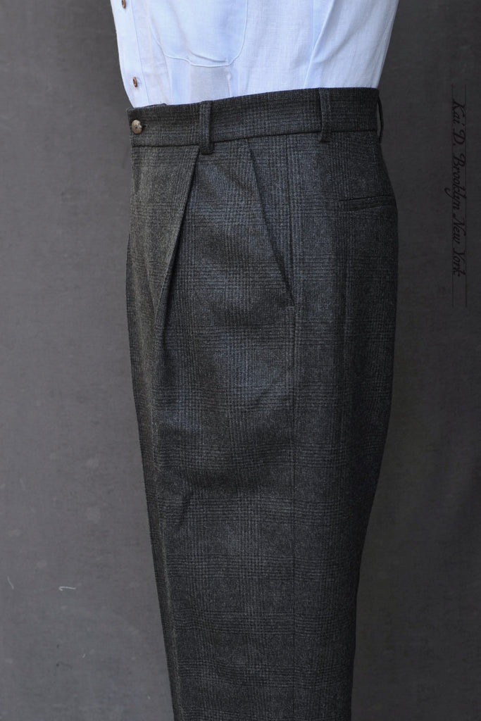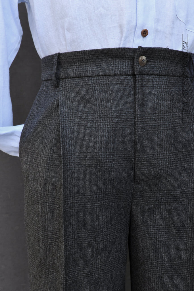 Made in 100% wool. High waisted fit. Wide leg and longer inseam