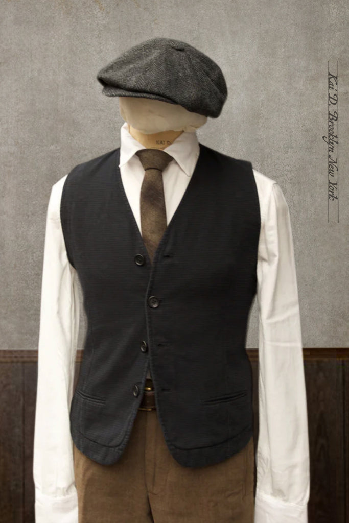 Made in English tweed in dark charcoal color. Same fabric used in our Maverick coat....