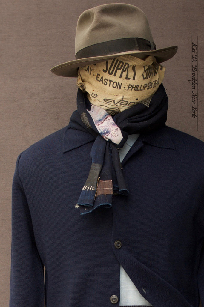 West African indigo scarf with hand patched boro details. Width: 13" Length: 62"