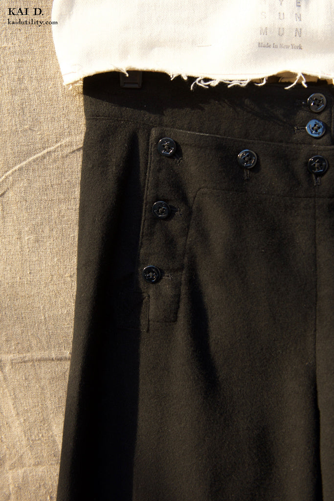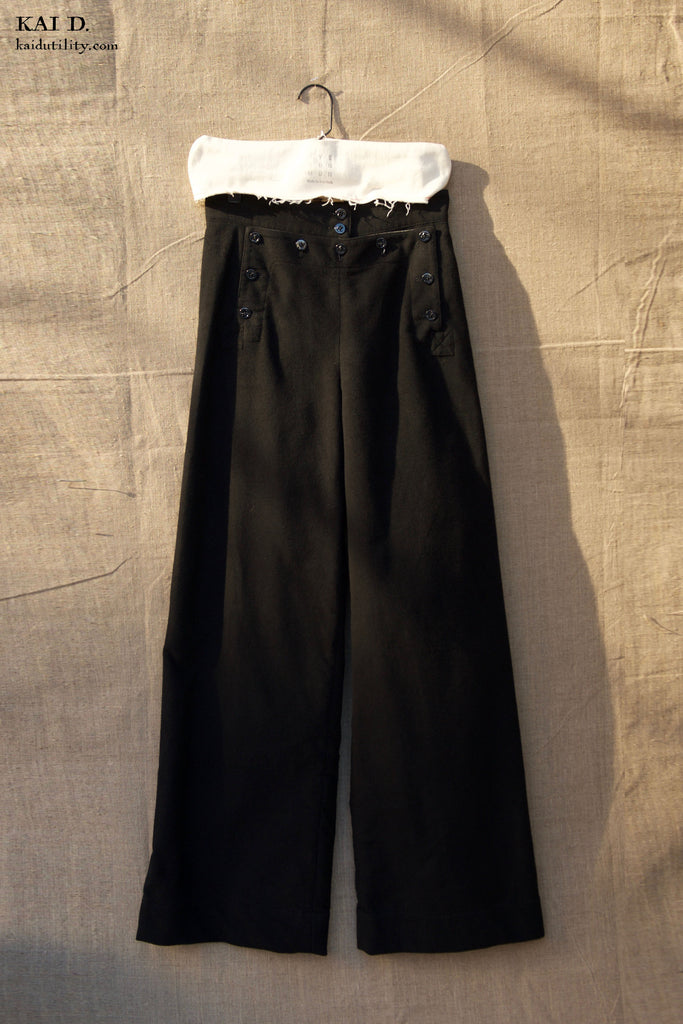 Made in soft cotton moleskin in black color. Super soft, high waist and adjustable at the back waist. Made in New York.