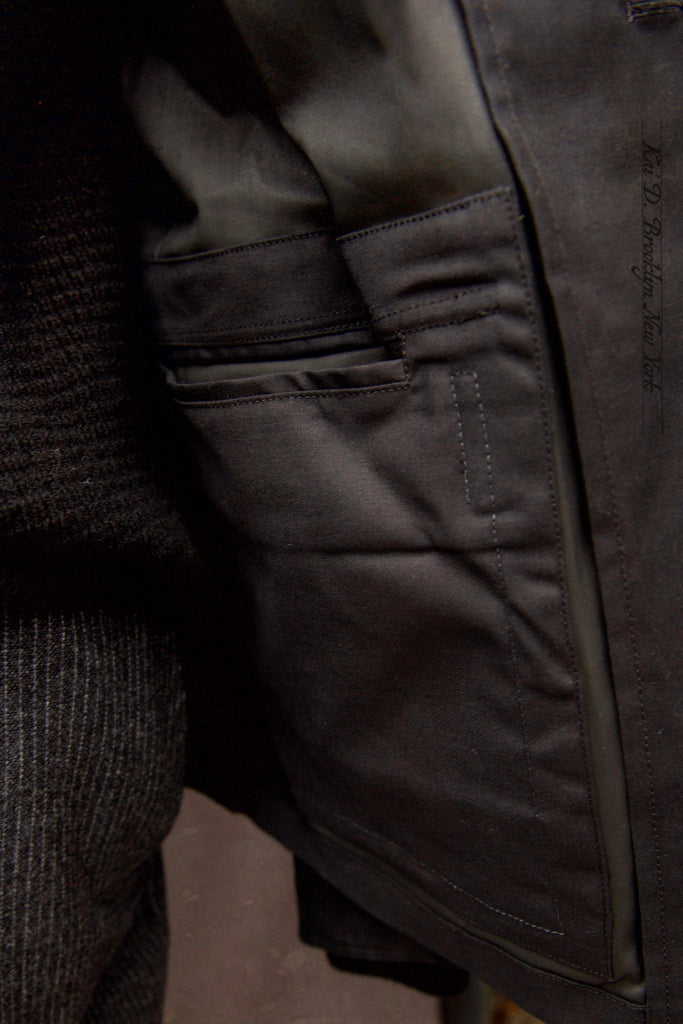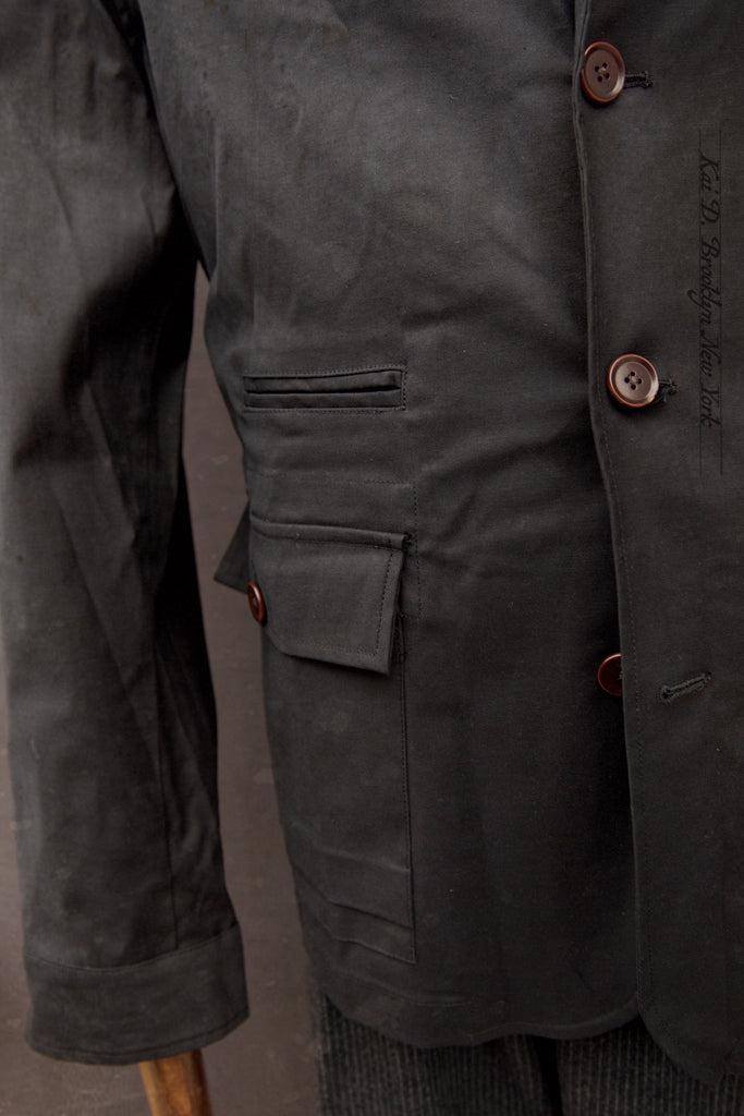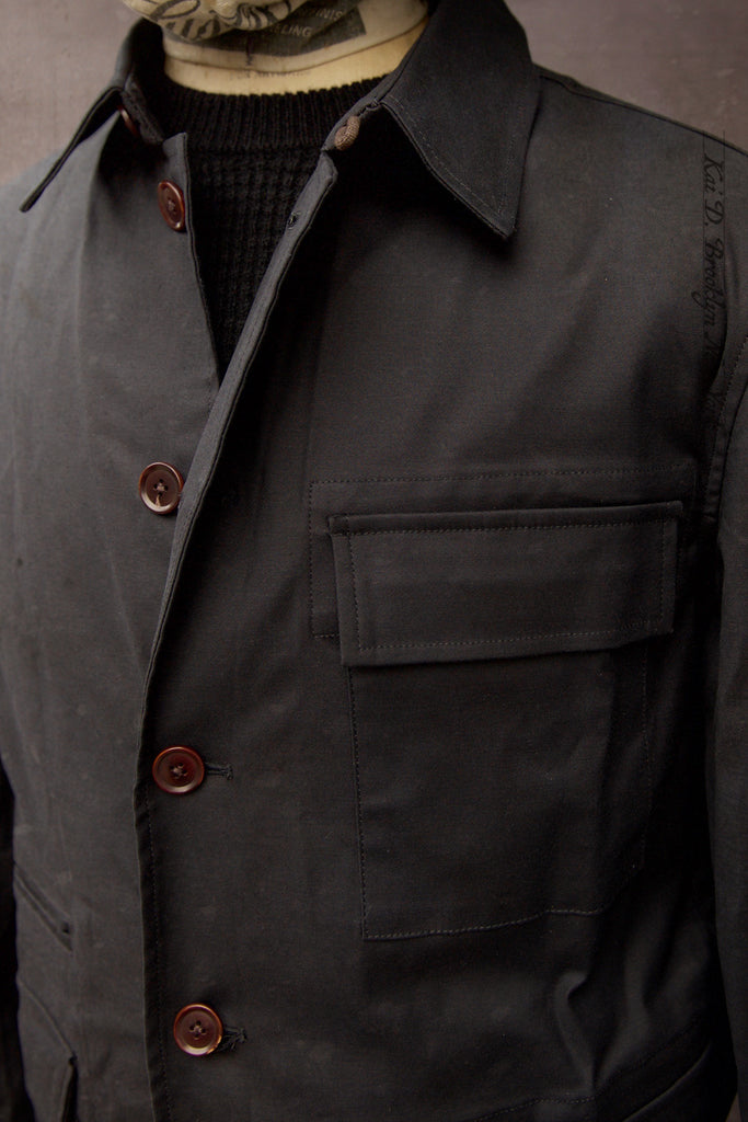 A new design which has taken more than one year to perfect the fit. I want a light waxed cotton jacket that is rain resistant and has sufficient room in lower pockets to keep all the important belongings and several additional pocket (one easy access pocket for earplugs, chest pocket for pens and glasses, and one inside pocket for passport or a small notebook).