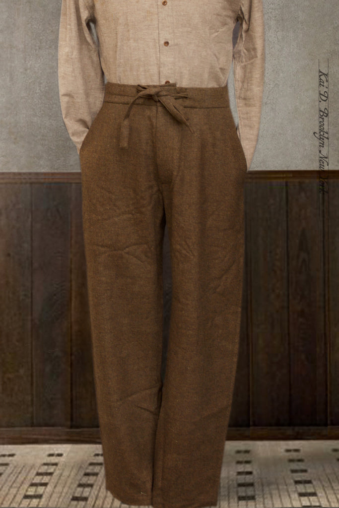Made in handspun herringbone cotton. Fabric is thick but soft. Size 2 (size 31): waist...