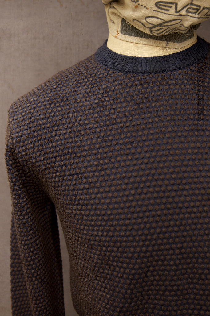 Pebble Stitch Crew Neck Sweater - Blue / Brown - 3, 4, 5, 6