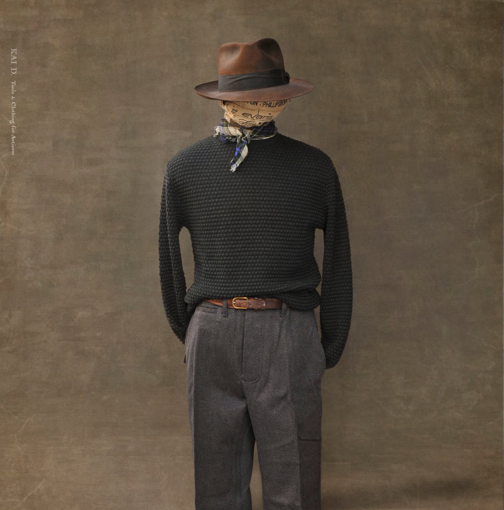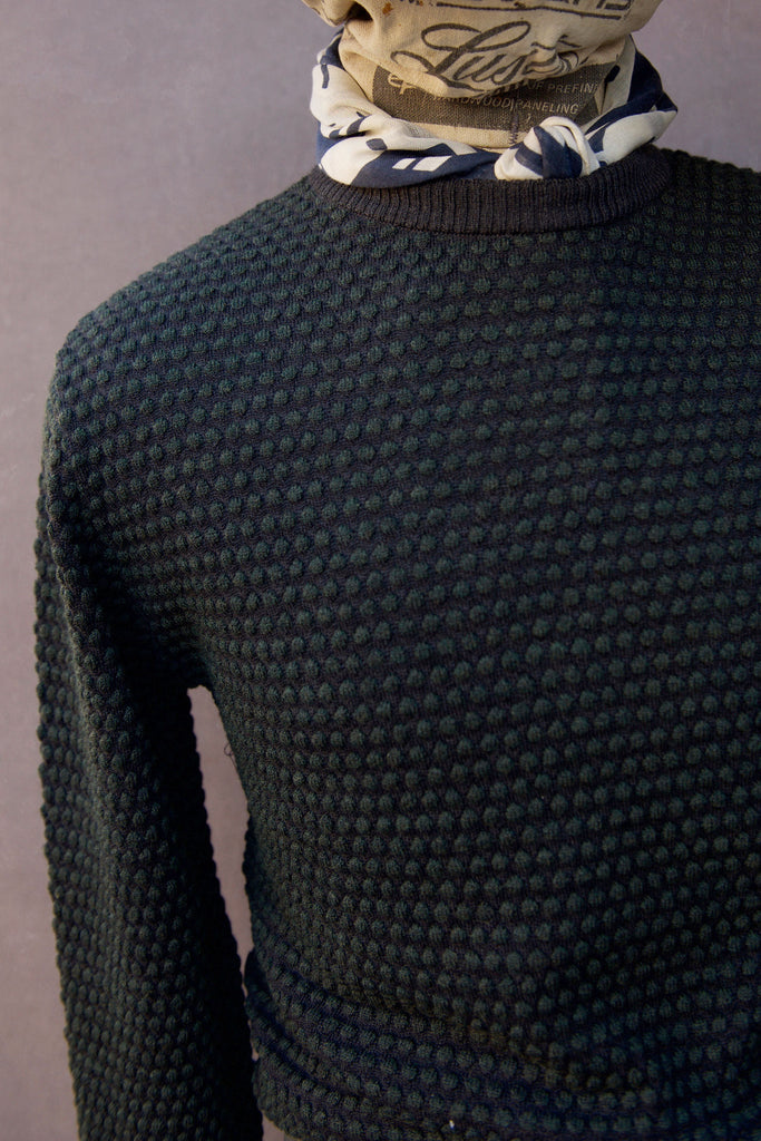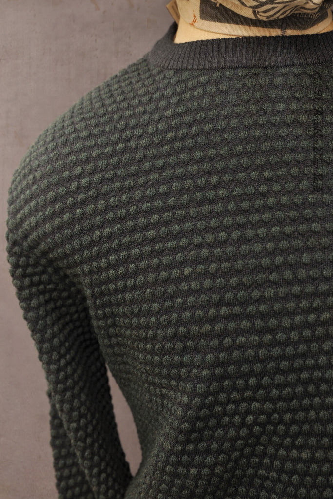 Pebble Stitch Crew Neck Sweater - Charcoal/Green - 6