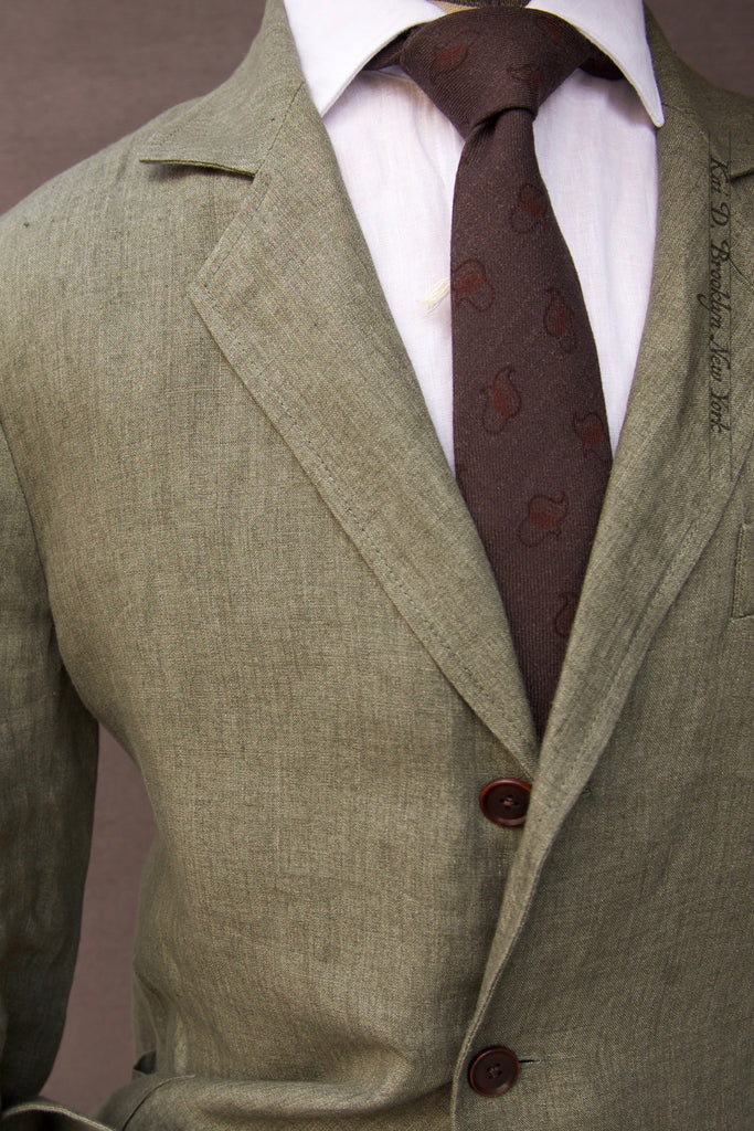 An unlined soft unconstructed blazer that is inspired by the turn of century sack suit but updated with a modern silhouette. Inside sleeve lined. Single back vent.